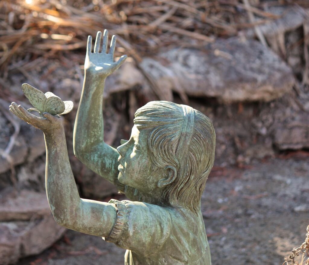 - Over there, among the autumn-pruned rose bushes, something glints like a butterfly’s wings. Only it is a brightness almost too glaring for one’s eyes to stay focused on. What is it?